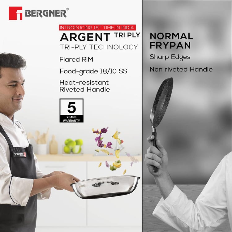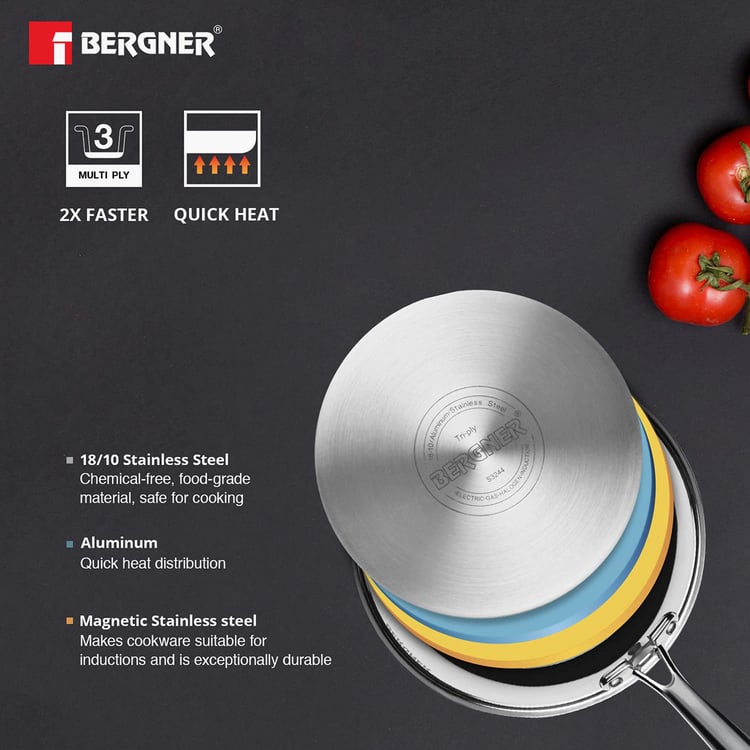 Bergner Argent is made of tri-ply stainless steel, which transfers heat and spreads it quickly, evenly, and precisely throughout the cookware. It prevents hot spots and results in an evenly cooked healthy meal.