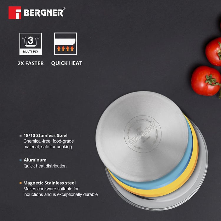 BERGNER Argent Triply Silver Stainless Steel Induction-Base Tasra With Lid - 2.5L