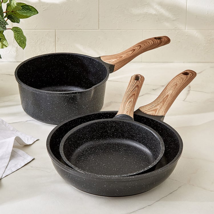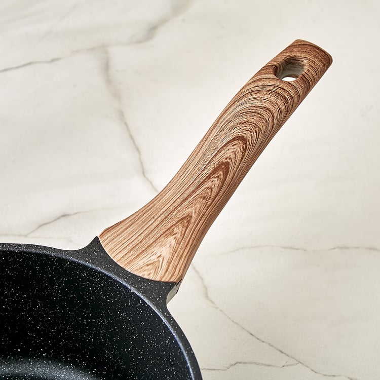 This milk pan is ideal for warming liquids, sauces, or small servings with precision. Made from durable die-cast aluminium for even heat distribution, it features a marble coating for smooth, non-stick cooking. A heat-resistant wooden handle provides a secure grip and adds natural charm, making it a handy addition to your modern kitchen.