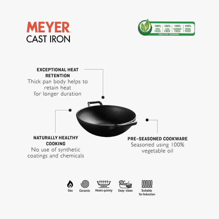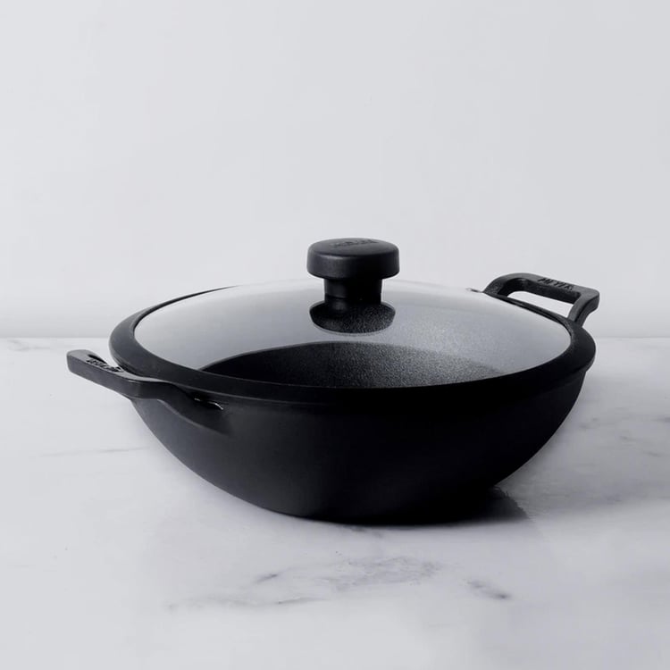 MEYER Cast Iron Kadhai with Glass Lid - 30 cm
