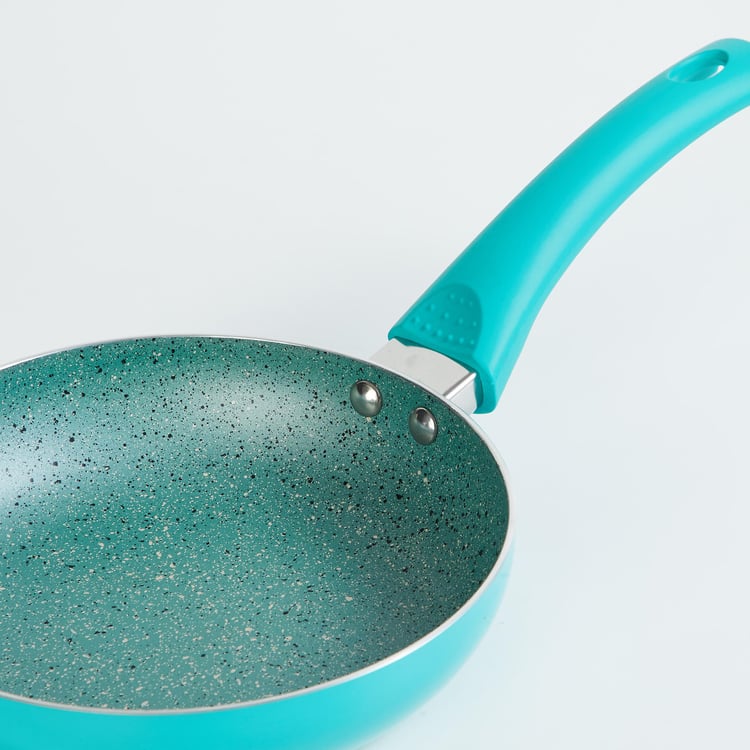 Convenience merges with contemporary design to bring you this fry pan that is crafted from sturdy aluminium for long-lasting durability and lets you prepare scrumptious meals with ease. It has even heat distribution along with a unique impact forged bottom.