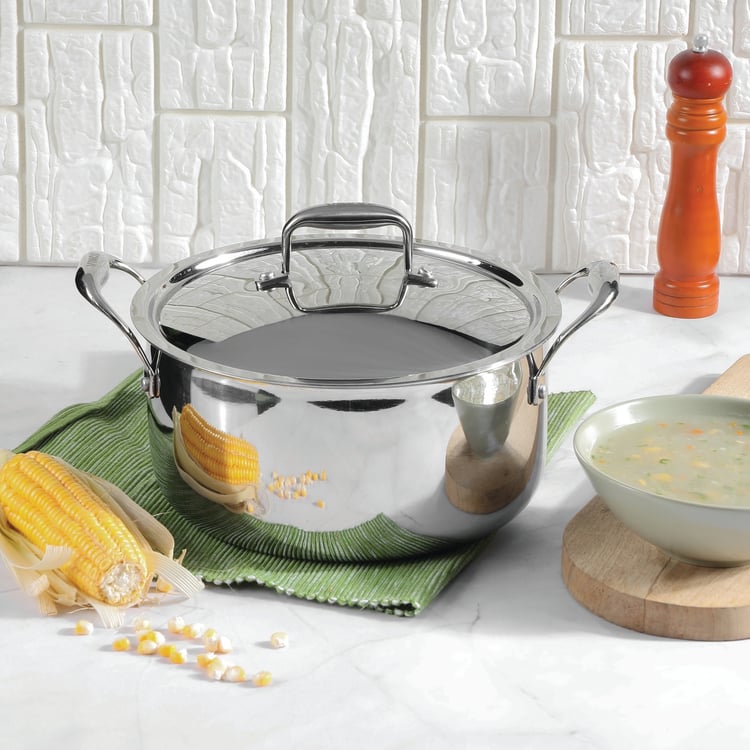 Vinod Platinum triply stainless steel series is made up with SAS technology, which is a triple layer construction of stainless steel, aluminium and stainless steel . The inner layer is made up of food grade 18/8 stainless steel, which is hygienic stainless steel and rust free. The middle layer is consists of aluminium throughout, this ensures in even heat distribution and uniform cooking of food. The third layer is made of 430 stainless steel for induction compatibility. This triply stainless steel saucepot comes with riveted stainless steel handles that are ergonomically designed, provides maximum durability and extreme comfort. It is compatible across all heating platforms like gas, induction, ceramic, infrared and hotplate. Ideal for cooking stews, soups and pastas, as well as simmering, boiling and making sauces.