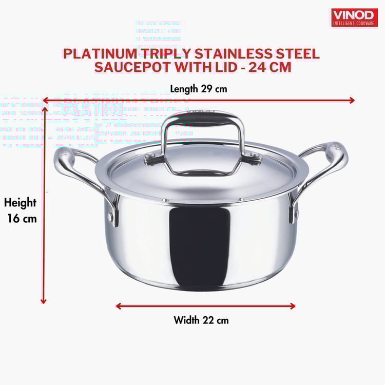 VINOD Platinum Triply Stainless Steel Sauce Pot with Lid - 5L