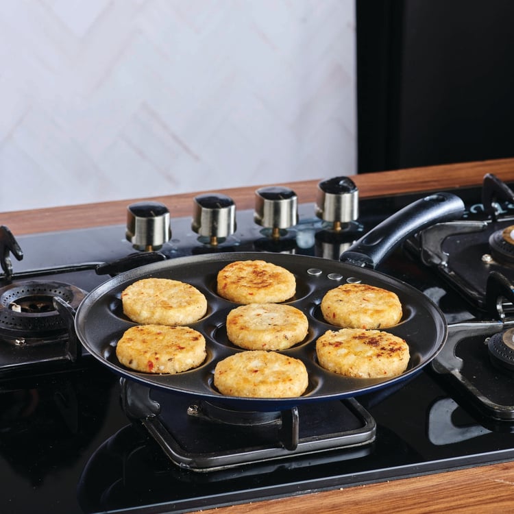 Vinod's zest non stick cookware is made up of triple layer non stick coating which is scratch proof .The non-stick coating ensures that you use minimal oil. The thick aluminium helps you cook food without burning and is extremely durable. As it is non-stick , the oil does not form any hard layer, making it easy to clean it. This non stick mini uttapam pan comes with riveted sturdy handle which is heat resistant and durable. It comes with 7 pits, so you can make 7 uttapams at a time. A soft sponge with some soapy water is enough to get the greasiness off. Additionally, because of its scratch-resistant coating, you can use metal spoons without peeling the external coating off. This non stick panniyarakkal is gas stove compatible. It is free from pfoa, heavy metals and harmful chemicals. So much better than cheap coatings that peel off and lose effectiveness within a few months of use. It can be used to make various snacks such as mini pizzas, uttapams, pancakes, omelettes etc.