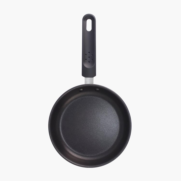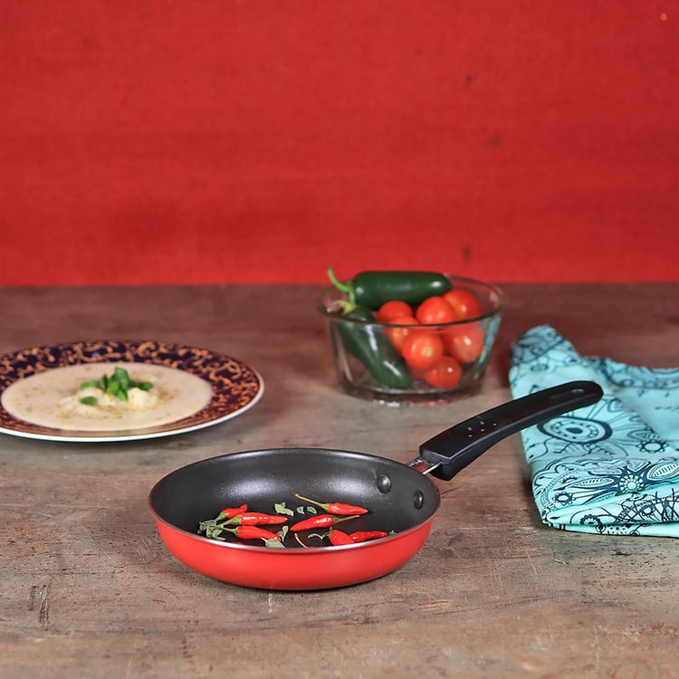 This samson frying pan from WONDERCHEF has been constructed from thick steel for even heat distribution and has a non-stick coating for long-lasting performance, thus ensuring that you can cook delicious recipes. The non-stick coating lends extra durability to the exterior as well as interior surfaces. It also has a multi-layer, PFOA-free, healthy and smooth surface that is perfect for no-oil cooking. The cool-touch bakelite grip on the die-cast handle also adds to the look.