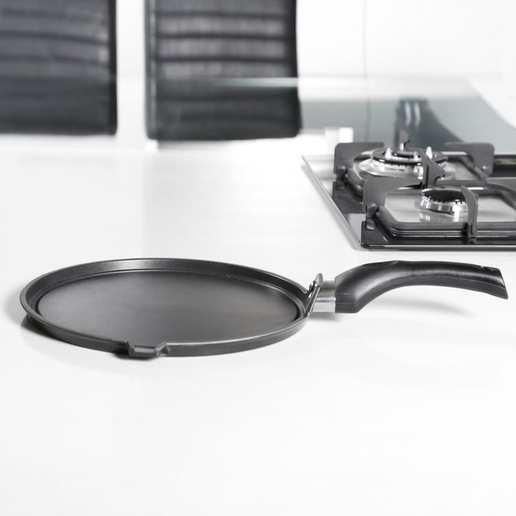 Go healthy with our Oil Saver Tawa! Featuring a double layer DuPont non-stick coating; it comes firmly equipped with anti-loose handles and a metal spoon friendly surface.