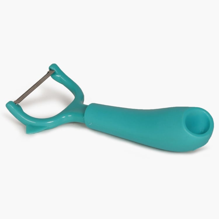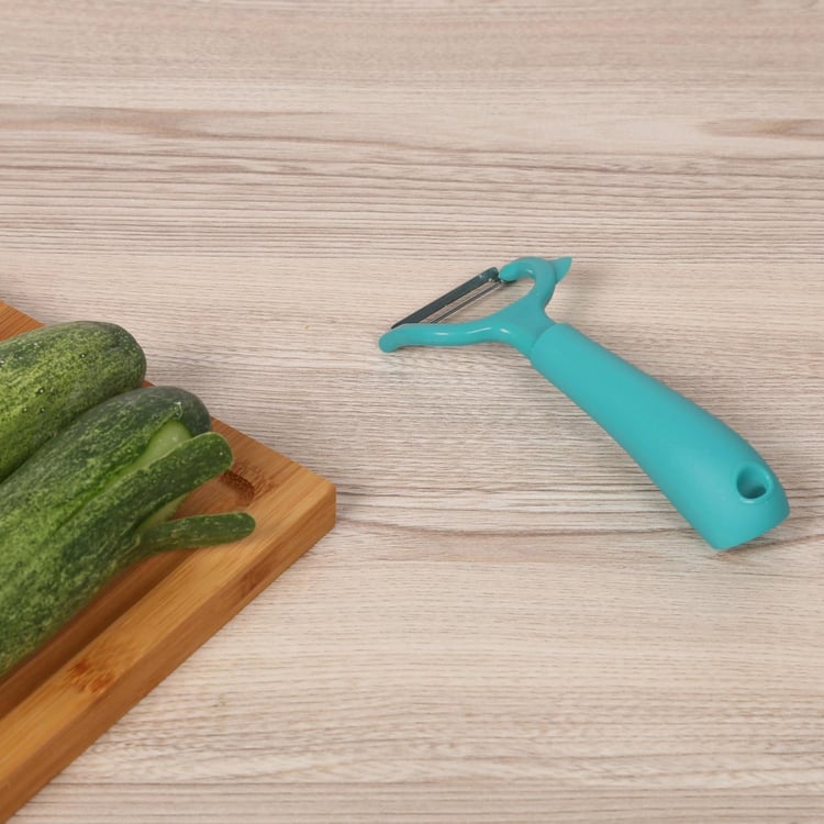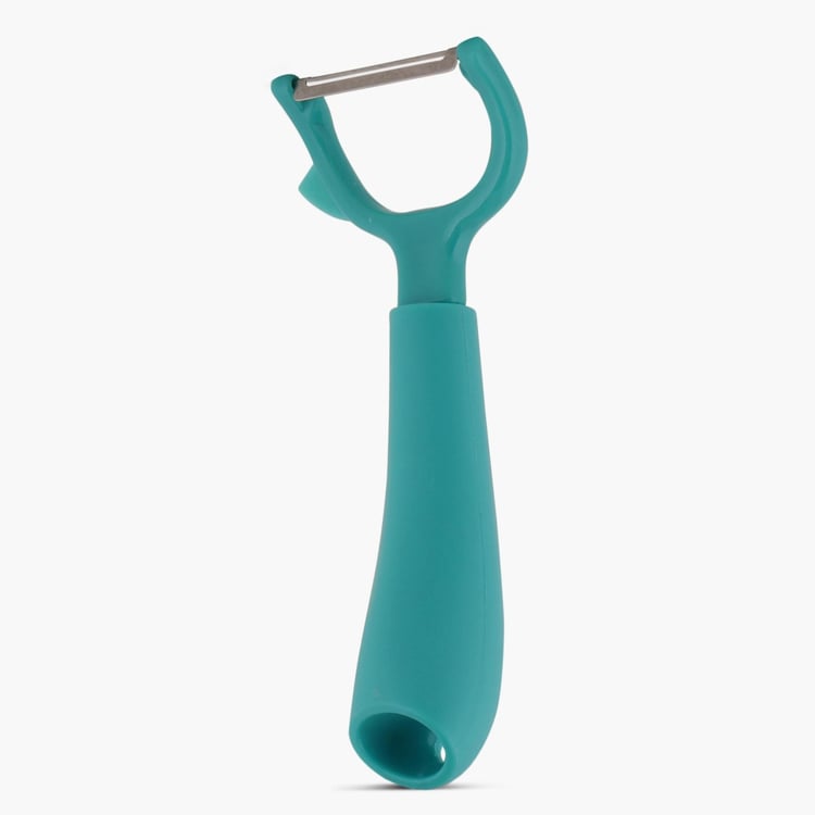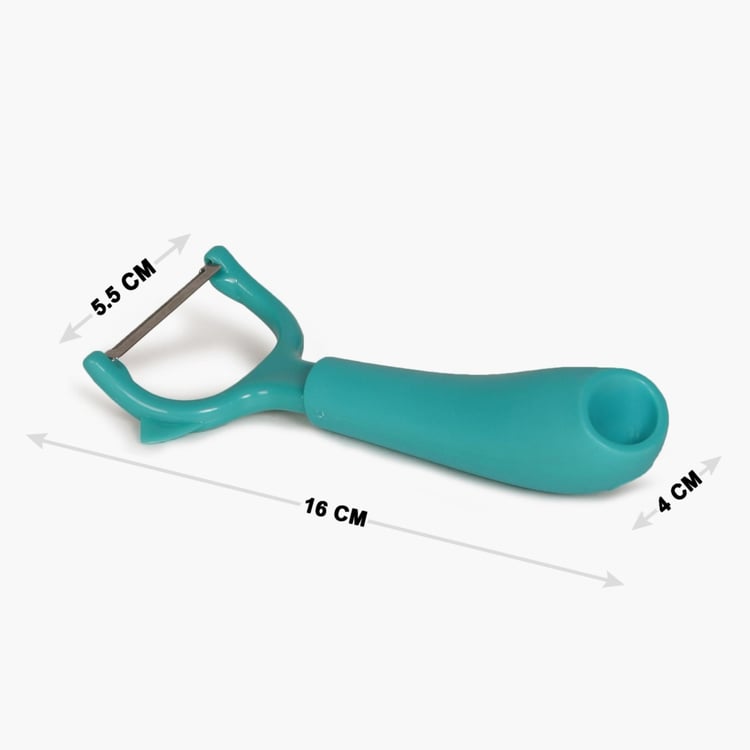 Firmly fitted with a polypropylene handle and a sharp stainless steel blade, this peeler is constructed to effortlessly peel off the skin, eye and blemishes of vegetables and fruits.