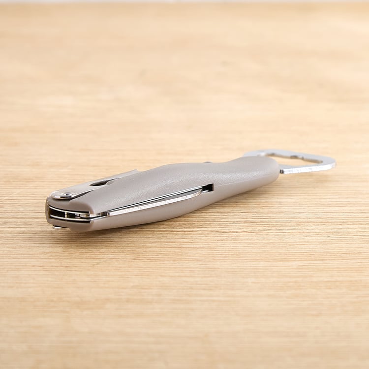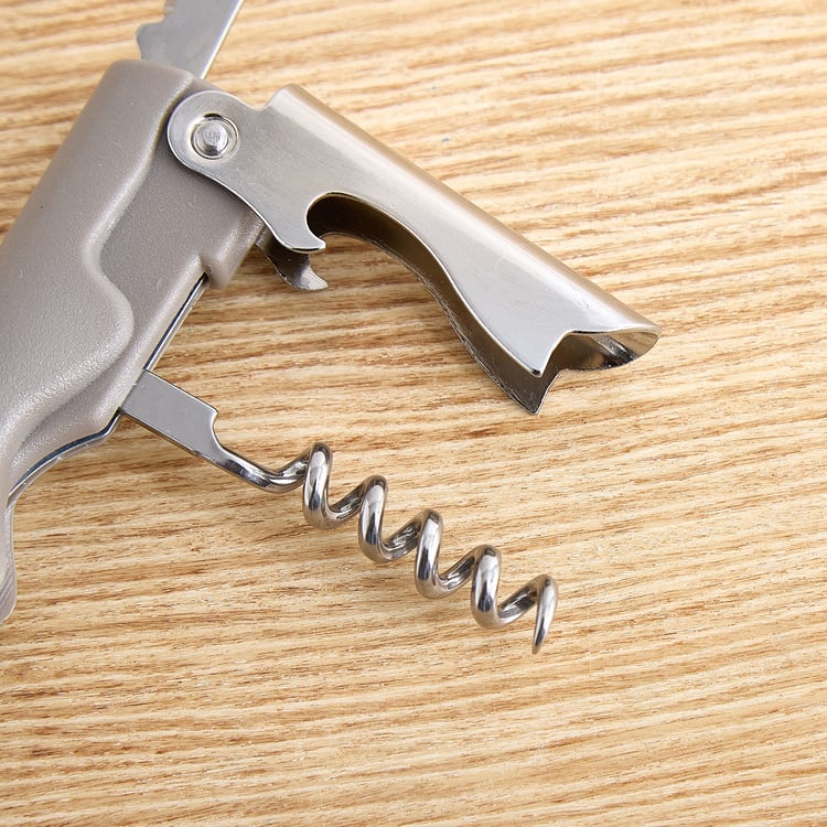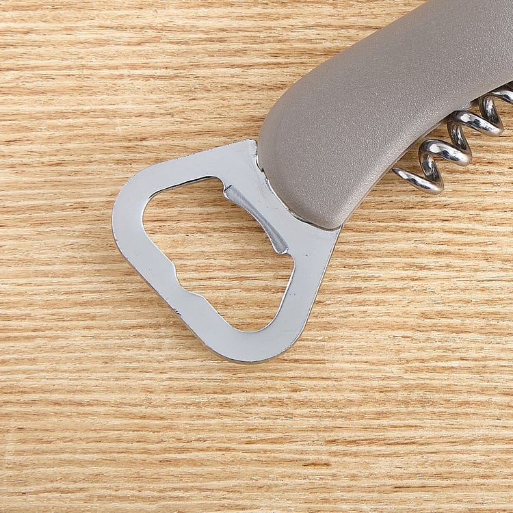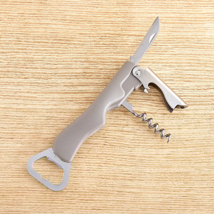 Open bottles effortlessly with this multi-utility corkscrew tool. Crafted from durable stainless steel, it features a foldable design with a corkscrew, bottle opener and foil cutter, offering convenience, easy handling and reliable performance for everyday kitchen and bar use.