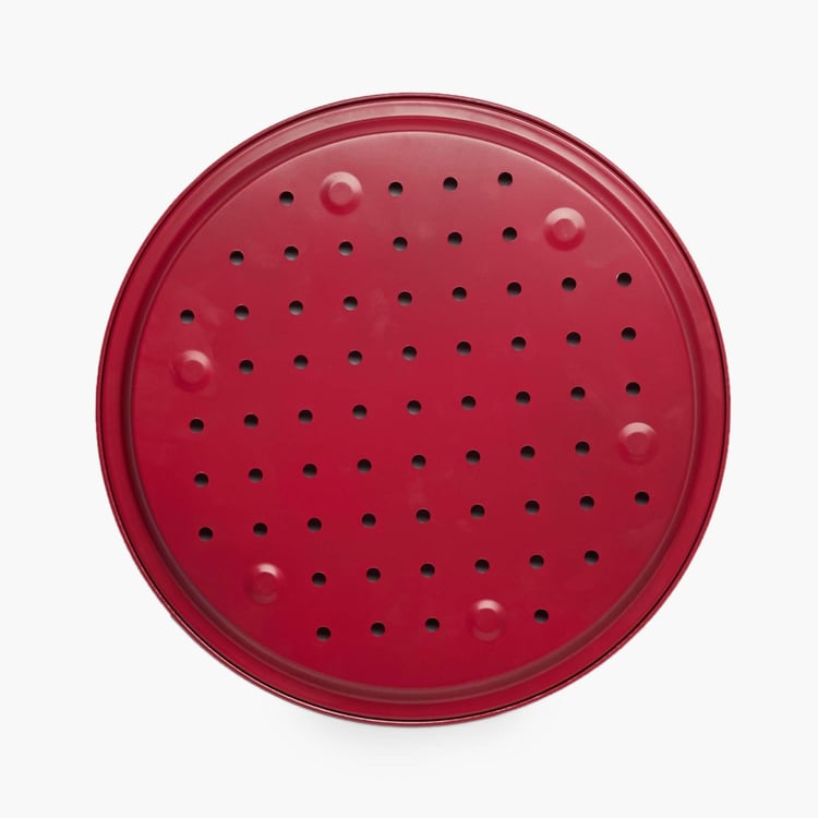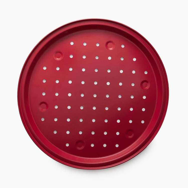Convenience merges with contemporary design to bring you this steel pizza pan that lets yo0u prepare delicious pizzas with efficiency.