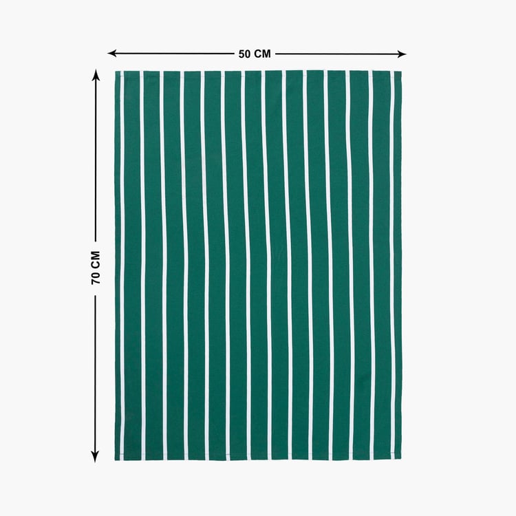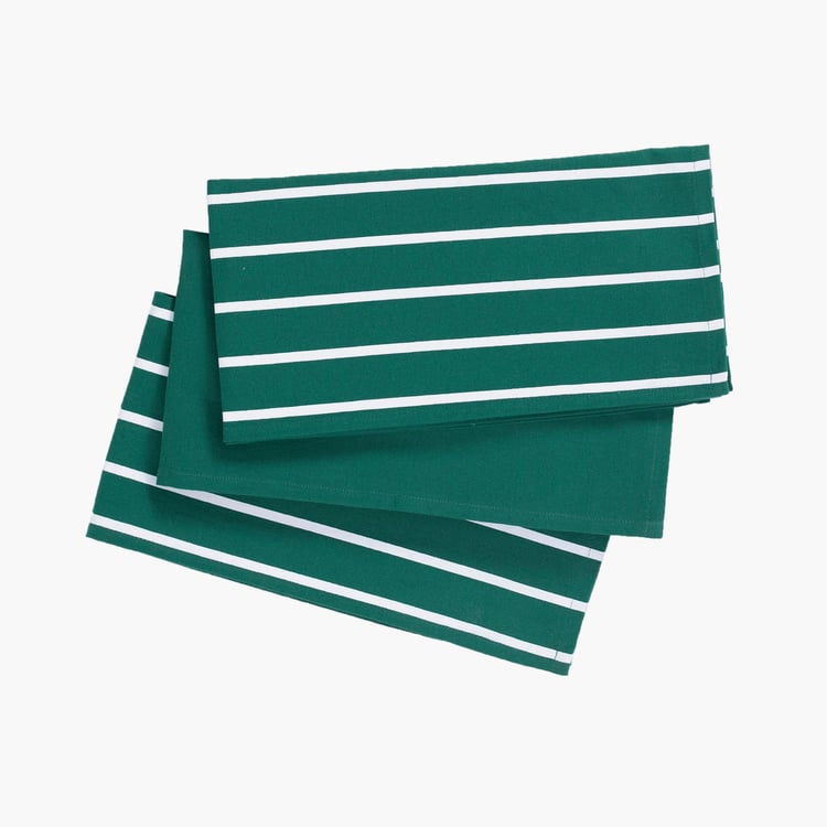 Make your time in the kitchen easy with this set of towels. Made of cotton, they are durable and easy to maintain. It includes a pair of striped towels and a solid kitchen towel.