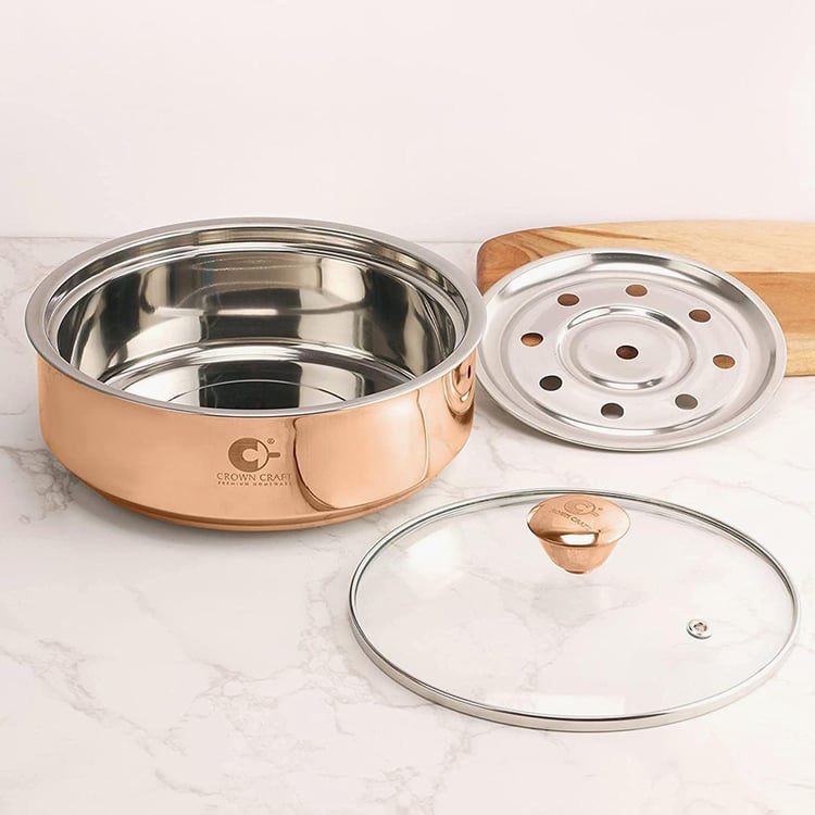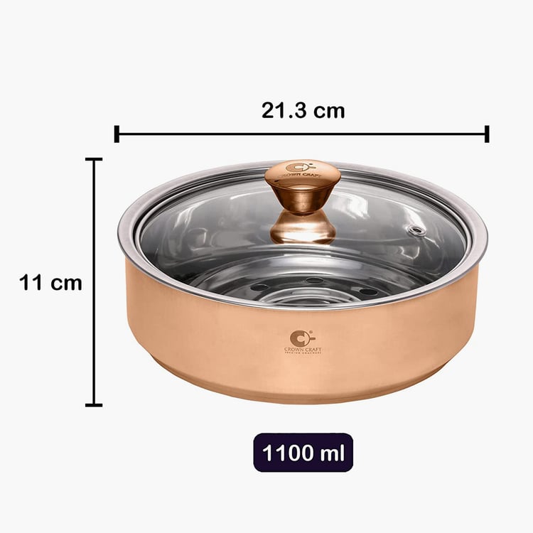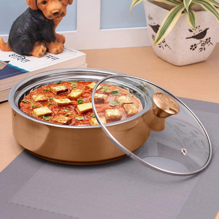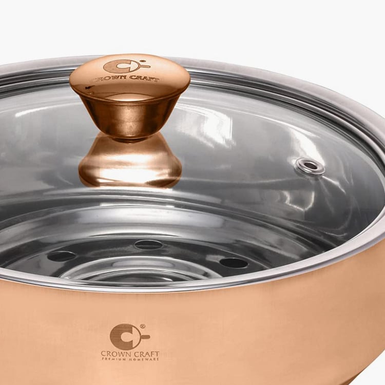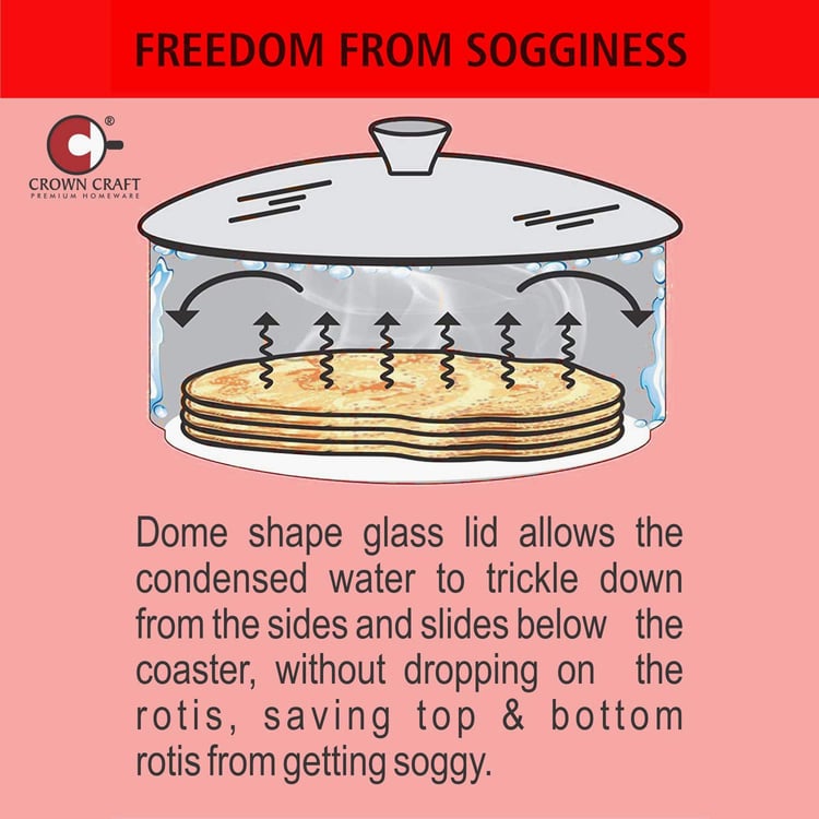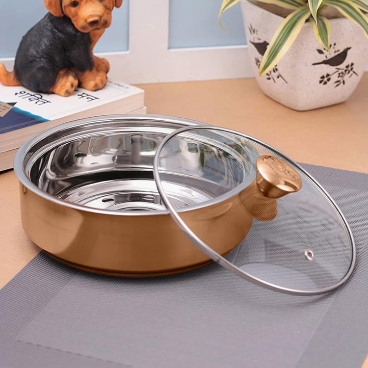 CROWN CRAFT Gold Stainless Steel Roti Server With Lid - 1100ml