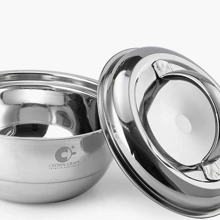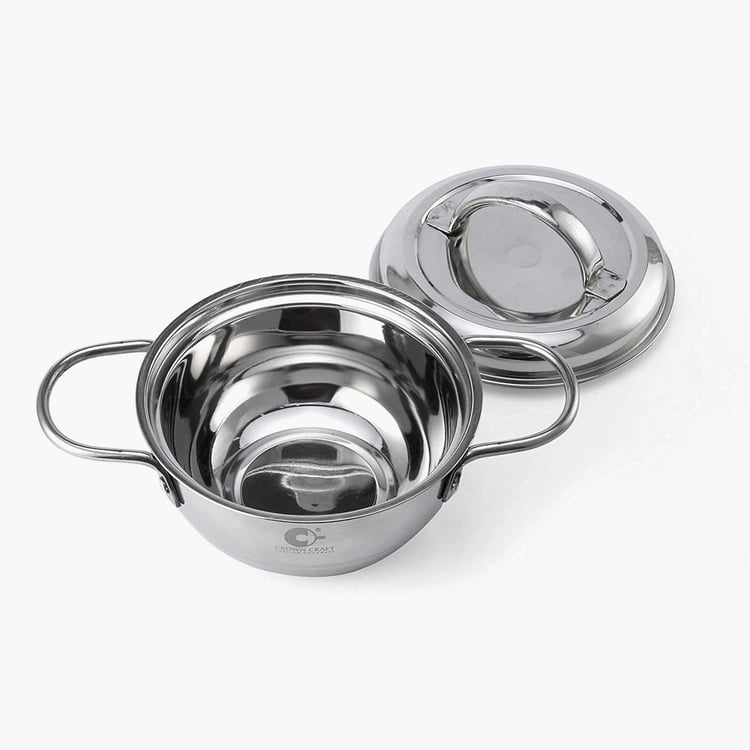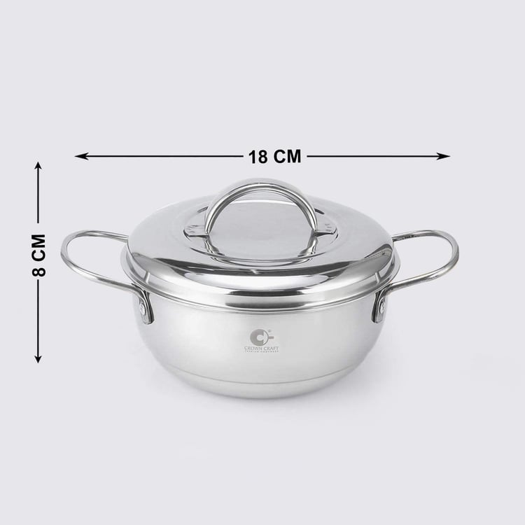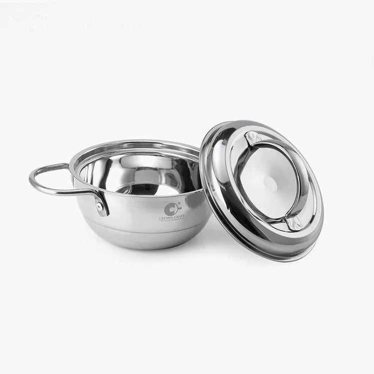 CROWN CRAFT Silver Solid Round Stainless Steel Casserole with Lid - 1.5L