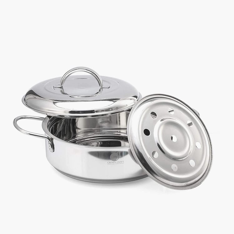 CROWN CRAFT Silver Stainless Steel Roti Server Casserole With Lid - 1.1l