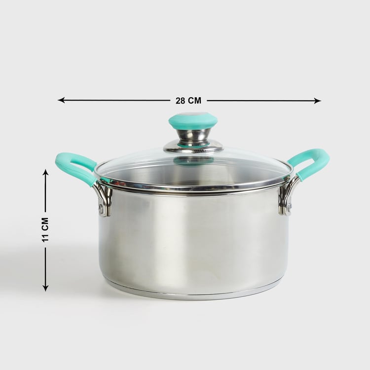 Convenience merges with contemporary design to bring you this casserole that is crafted from sturdy stainless steel for long-lasting durability and lets you prepare scrumptious meals with ease. The casserole is induction and gas compatible. It has even heat distribution along with a toughened glass lid and a unique impact forged bottom.