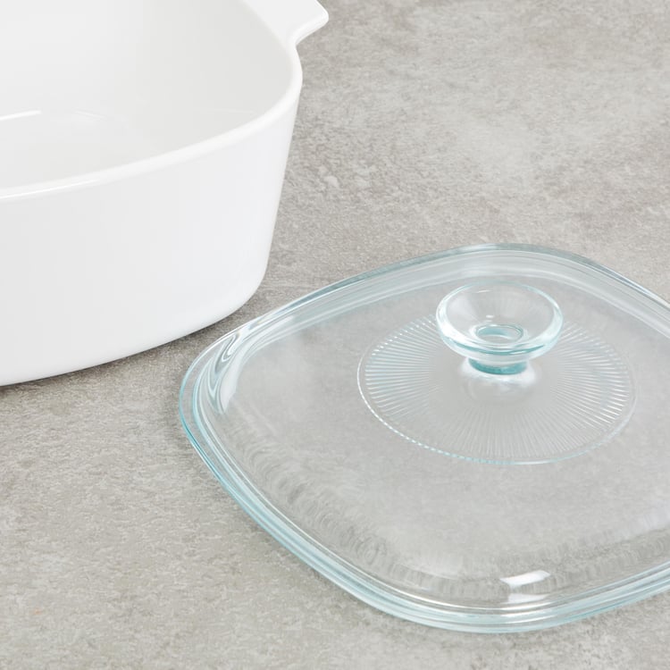 Bring convenience and contemporary charm together with this casserole set that features a sleek textured design on the surface and a glass lid to take care of your serving needs.