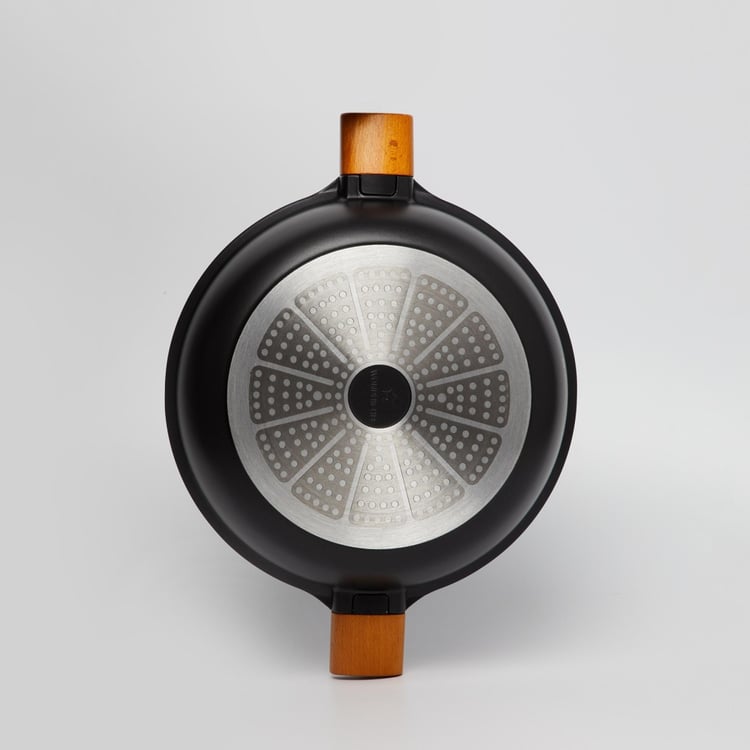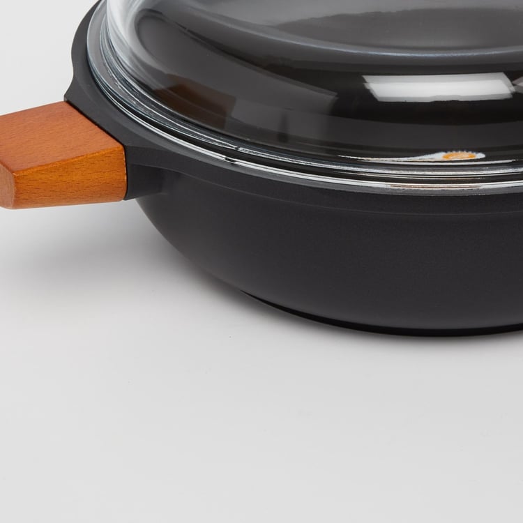 Designed using German technology with greblon non-stick coating, induction base and glass lid, this casserole makes for an efficient cook and serve a dish.