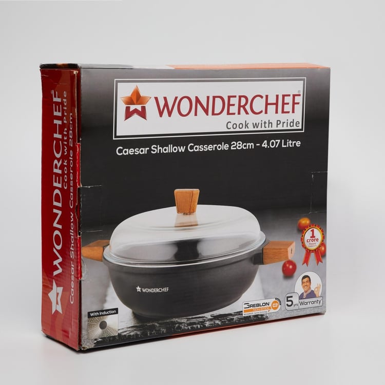 WONDERCHEF Caesar Shallow Casserole with Glass Lid- 4.07 Litre