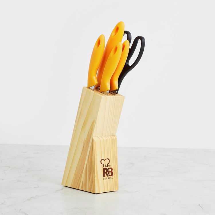 Fiesta Orange Stainless Steel Knife Block Set - 6Pcs