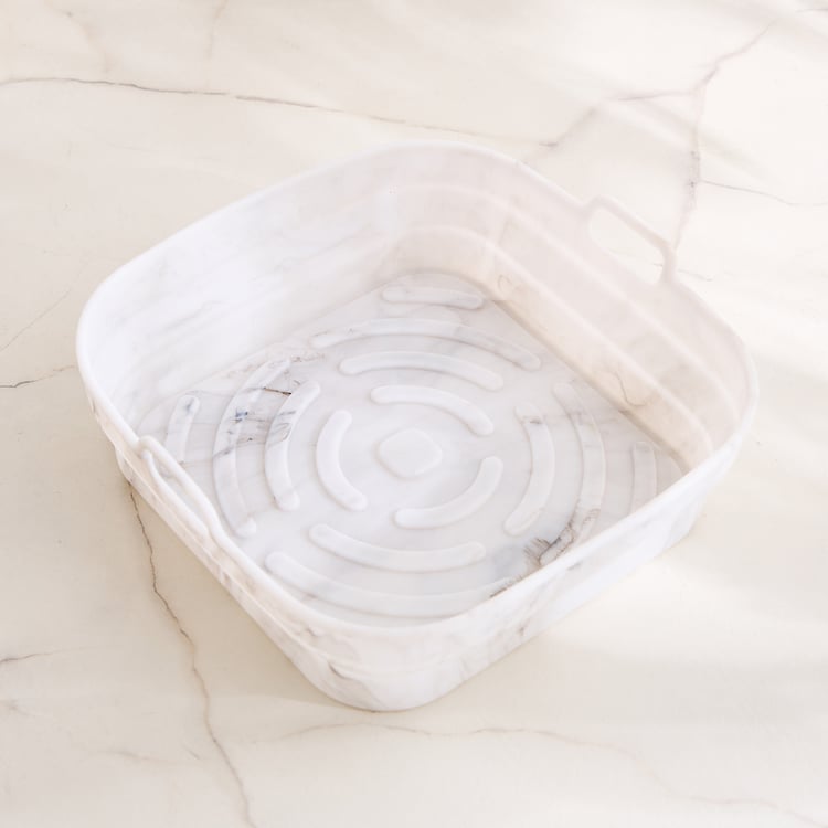 This silicone air fryer pan features a flexible, heat-resistant design that easily fits most baskets. It ensures even cooking, mess-free use, simple cleanup, and long-lasting convenience for healthier everyday meals.