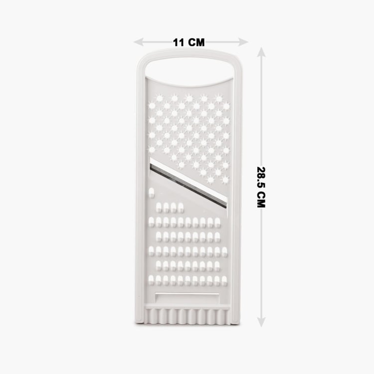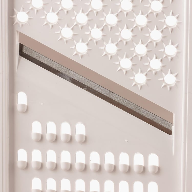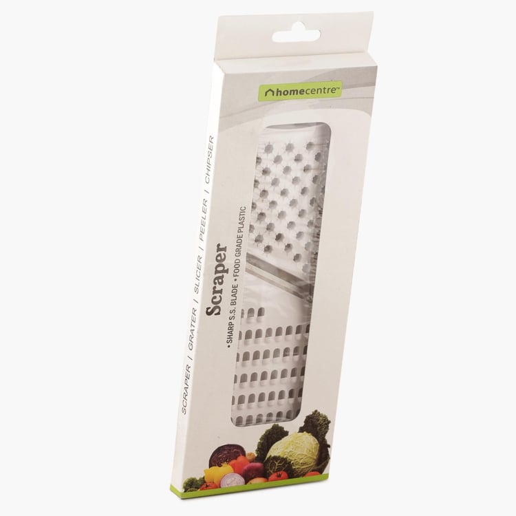 Introducing a versatile device which scrapes and grates any vegetable. Its fine blades helps you peel nuts and its slicing application aids in making potato wafers too.