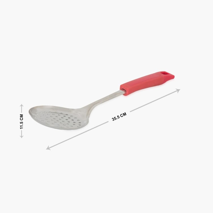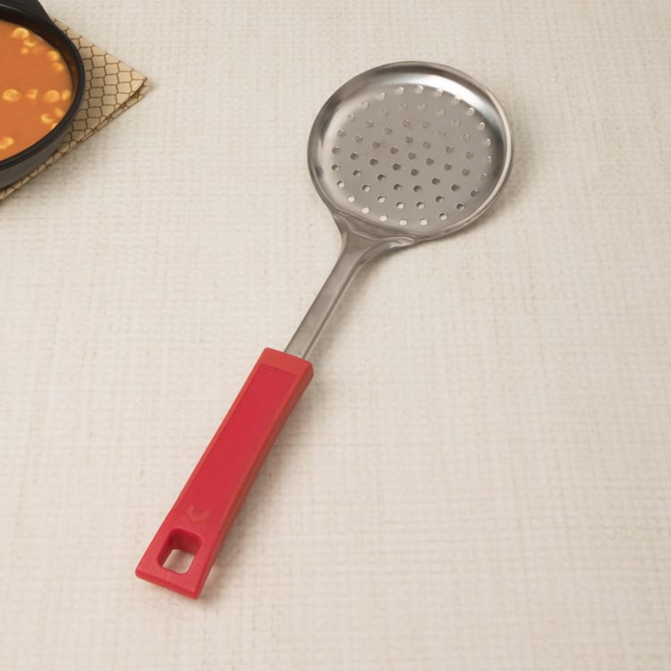 Convenience merges with contemporary design to bring you this stainless steel skimmer that lets you skim up oil and other liquids for scrumptious meals with efficiency.