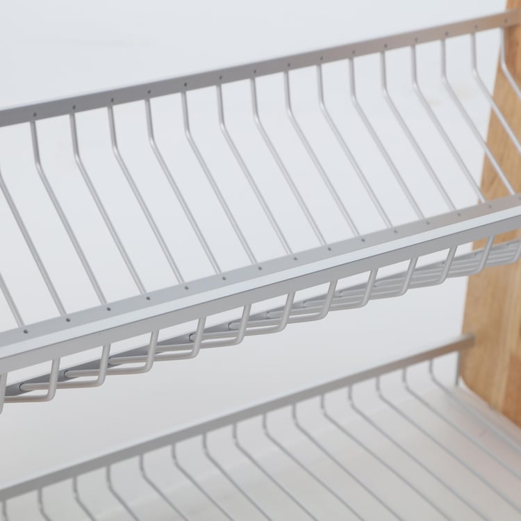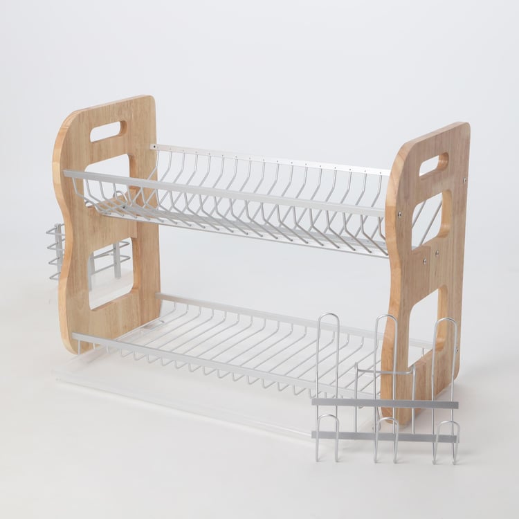 Defined by ergonomic space-saving design, this two-tier dish rack can be placed anywhere in your kitchen for ease of use. It can hold your dishes and other cutlery for convenient storage.