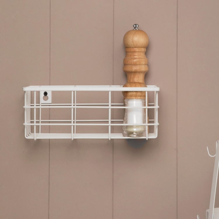 Orion White Solid Metal Wall Mounted Basket - 25x10cm