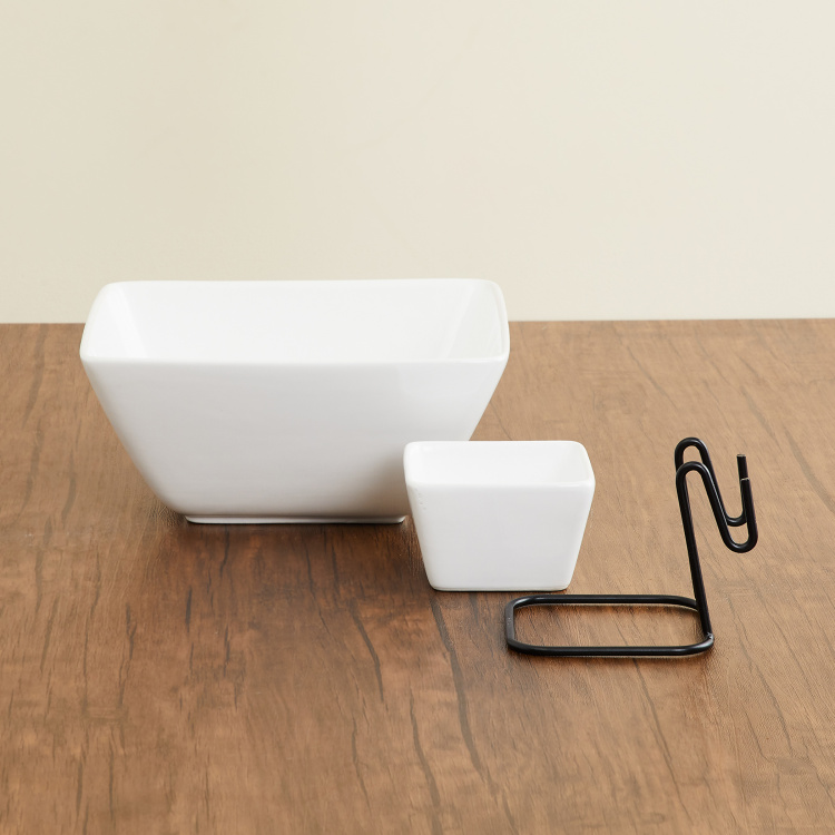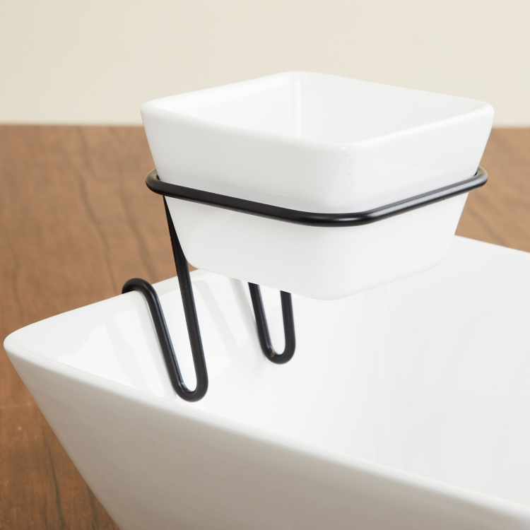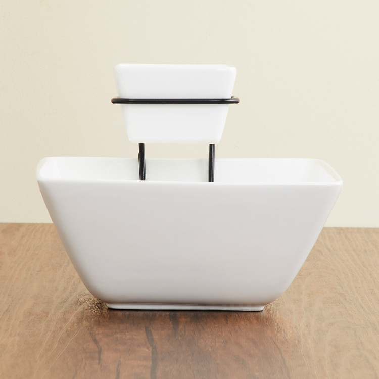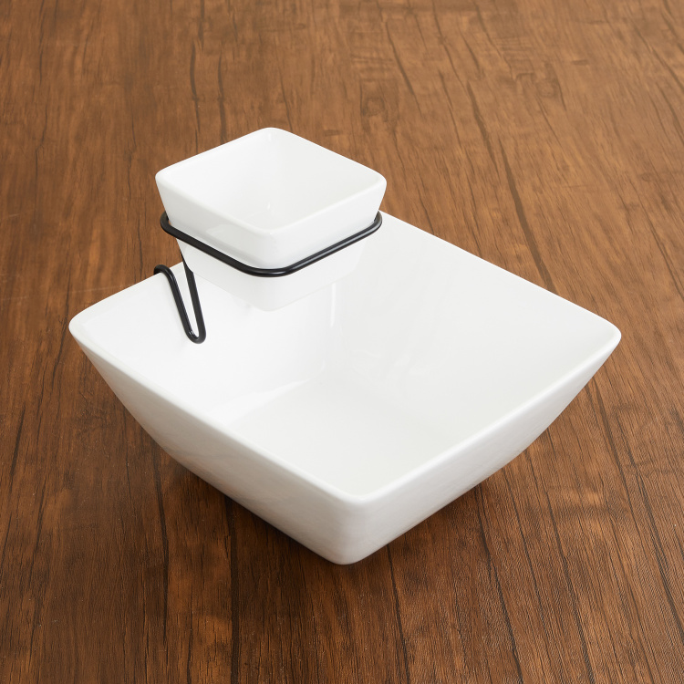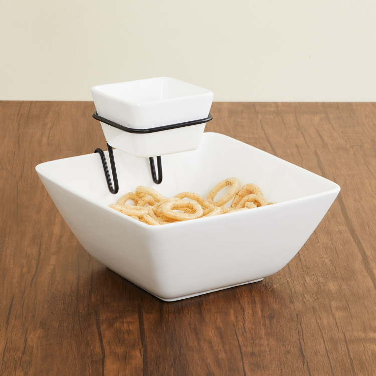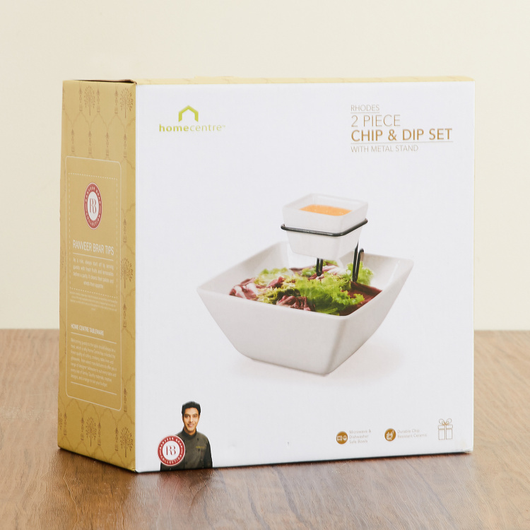 The minimalistic look and contemporary charm teamed with a solid design make this chip and dip set a great way to serve scrumptious snacks on the dining table. Available with a metal stand, it can be used for evening snacks or when there are guests around.