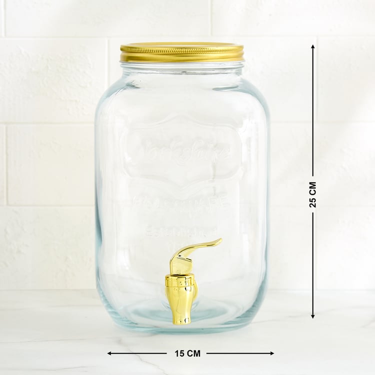 A must-have for your kitchen, this glass dispenser combines functionality with timeless style. Perfect for serving water, juices, fruit mocktails, and other refreshing beverages, it brings a classy touch to your countertops and tabletops alike.