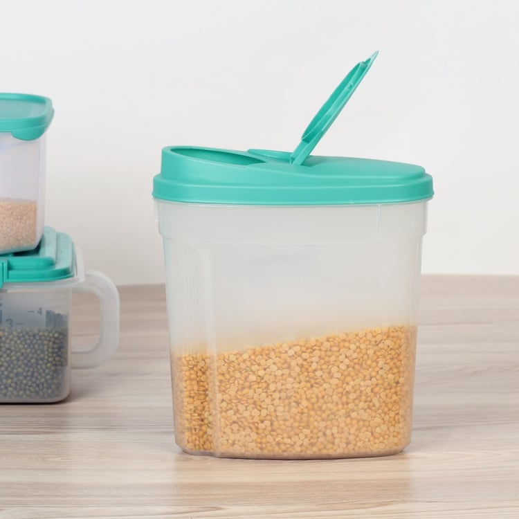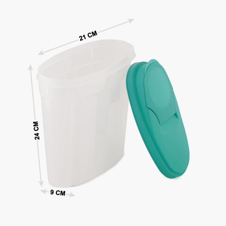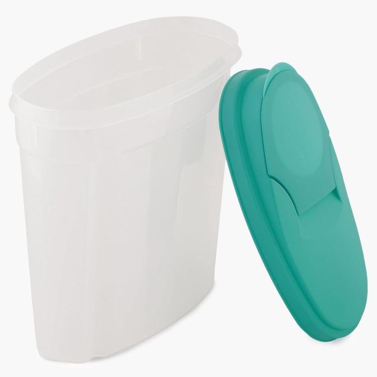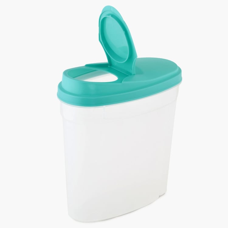 An easy-to-handle contoured container to store your cereal! The storage container has a smooth-pour pop up lid for easy pouring. It is made in BPA free hi-grade plastic and has a capacity of 3100 ml.