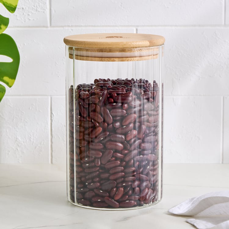 Palestine Sagano Borosilicate Glass Storage Canister with Bamboo Lid - 1L