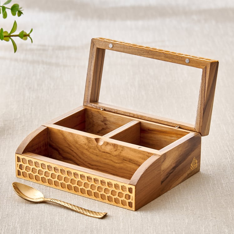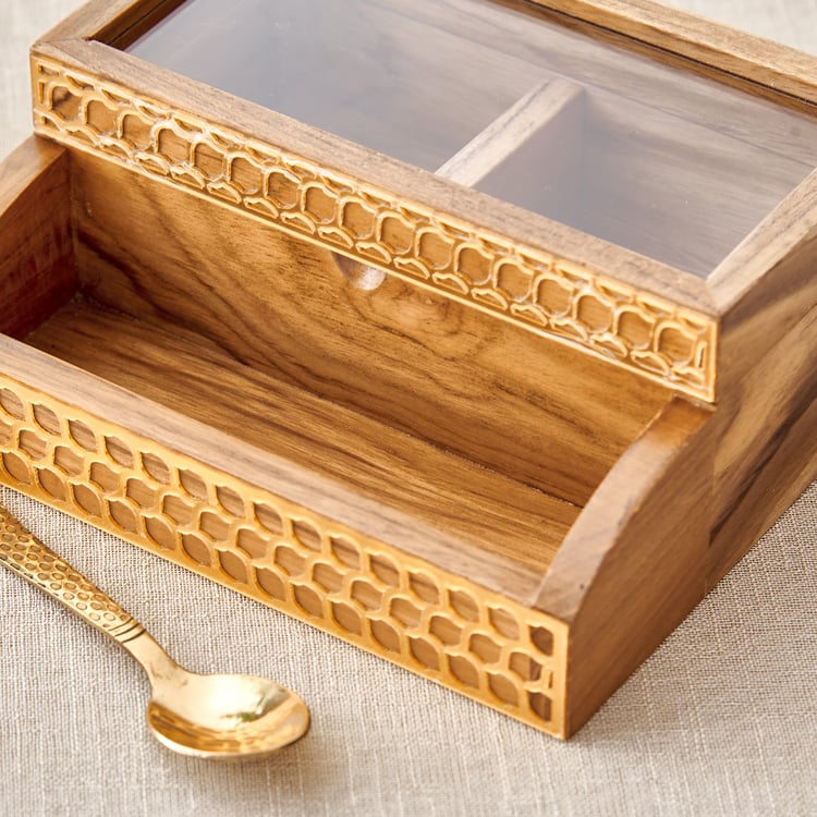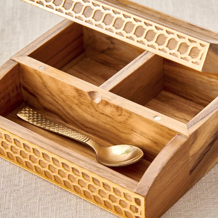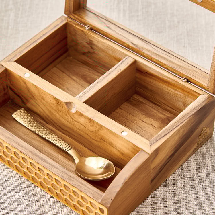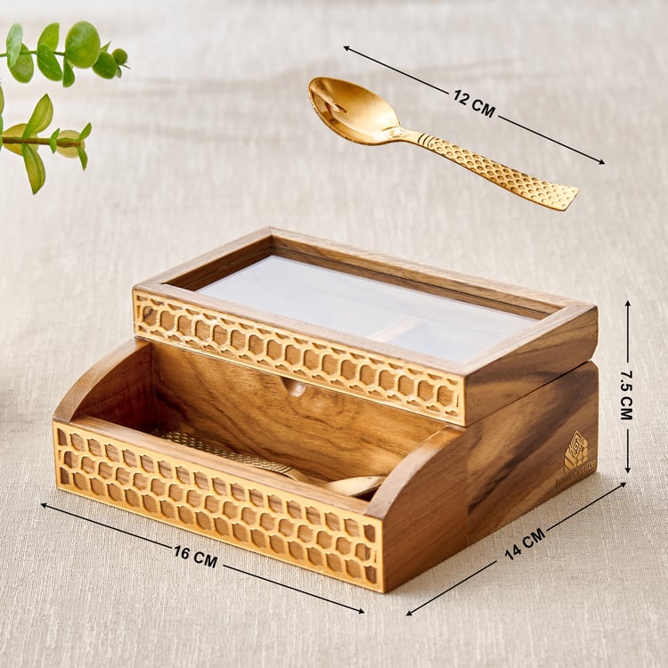Haze Dietes Teak Wood Mouth Freshener Box with Spoon