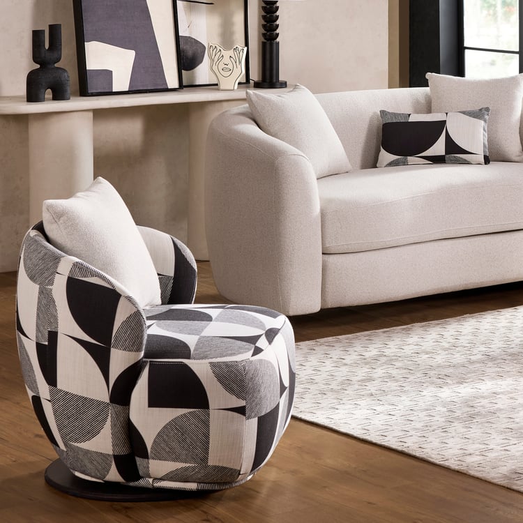 Saga Fabric Swivel Accent Chair with Cushion - Black