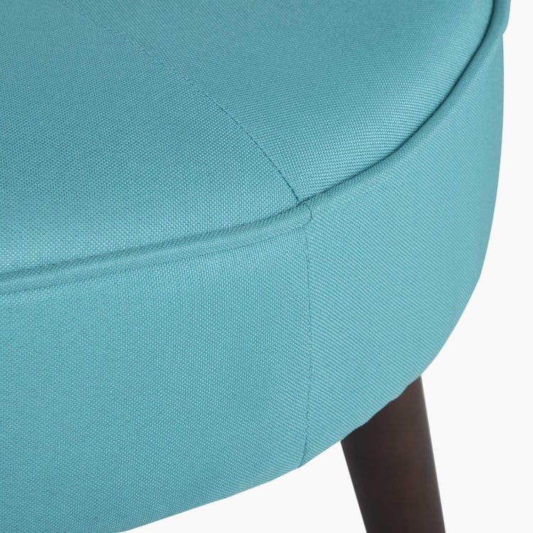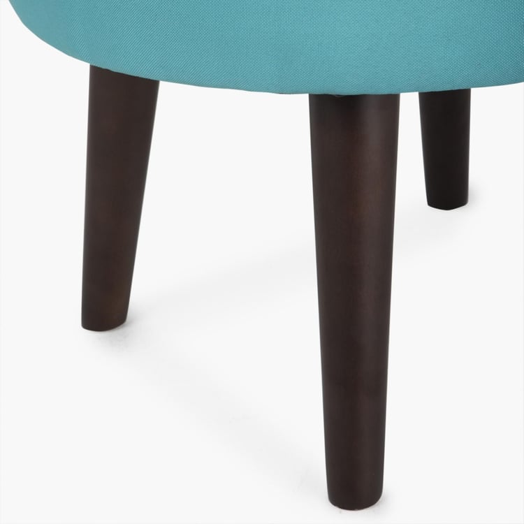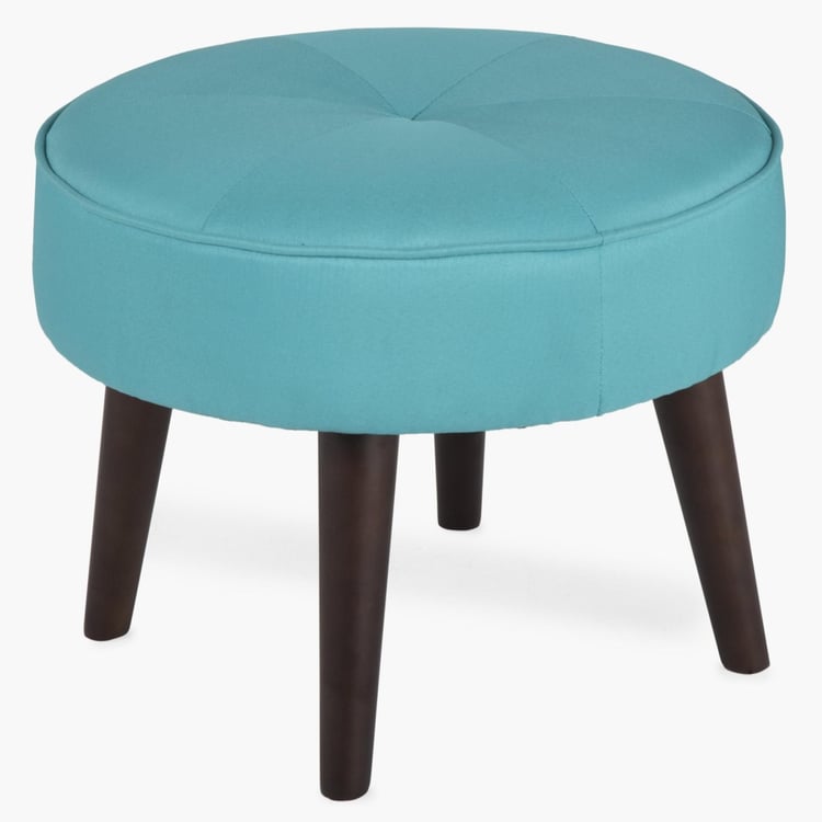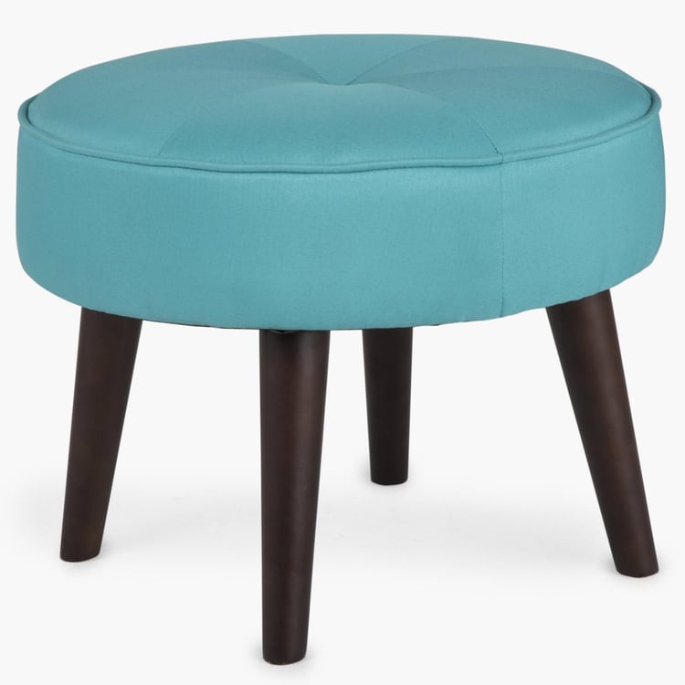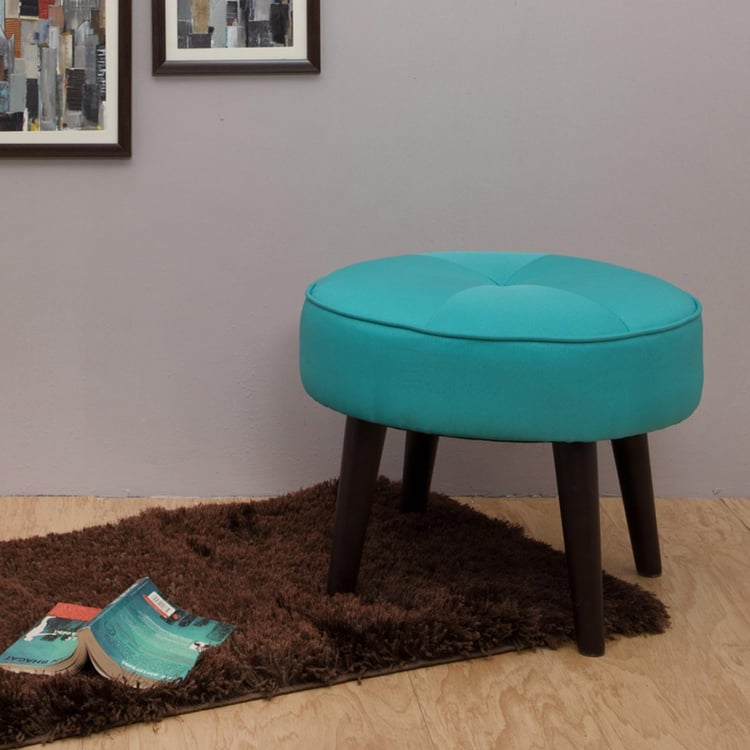 Upholstered with textured fabric that seems rugged and versatile, this round ottoman with its sturdy wooden legs makes for a stylish and contemporary seating option.