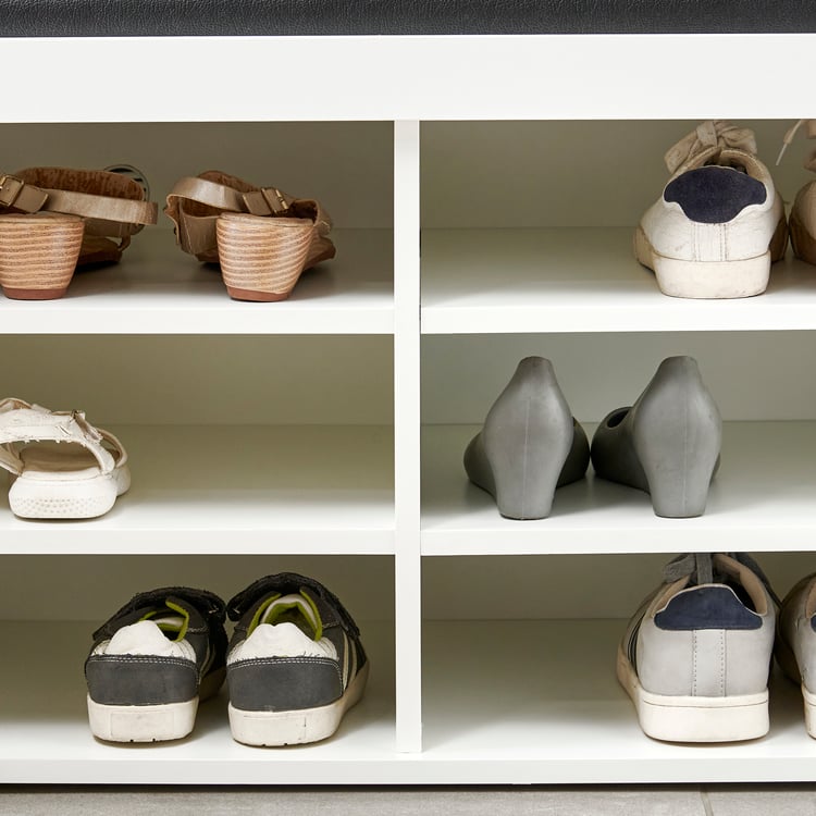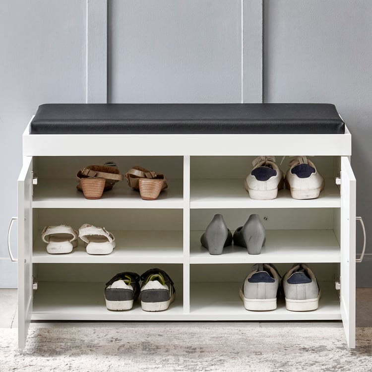 Helios Alton 12 Pairs Shoe Cabinet with Cushion Seat - White
