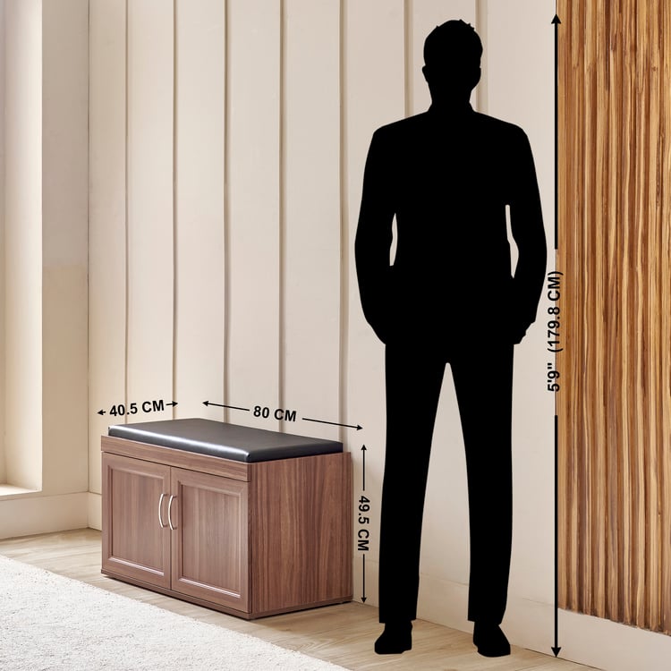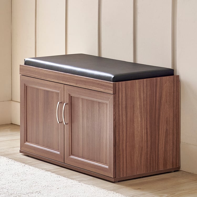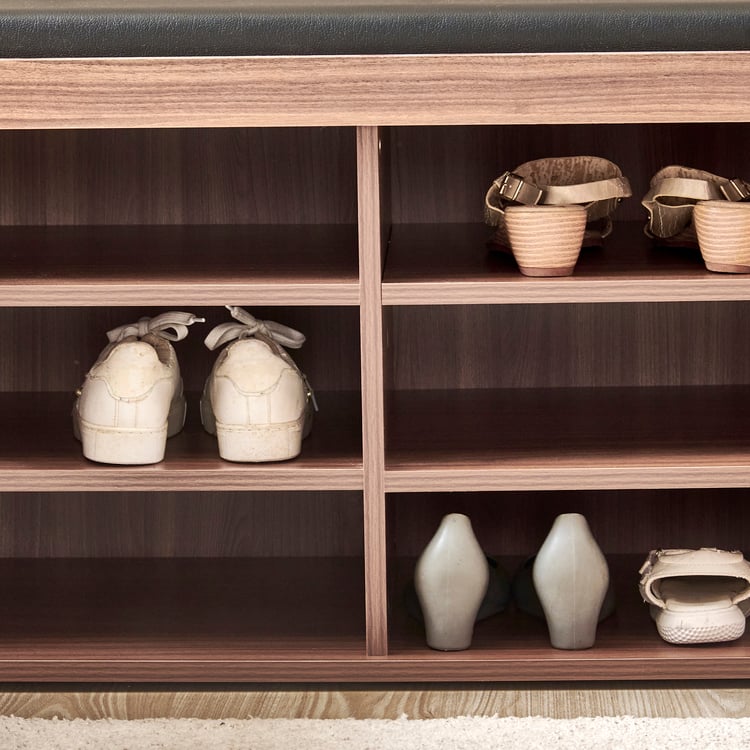 Helios Alton 12 Pairs Shoe Cabinet with Cushioned Seat - Walnut