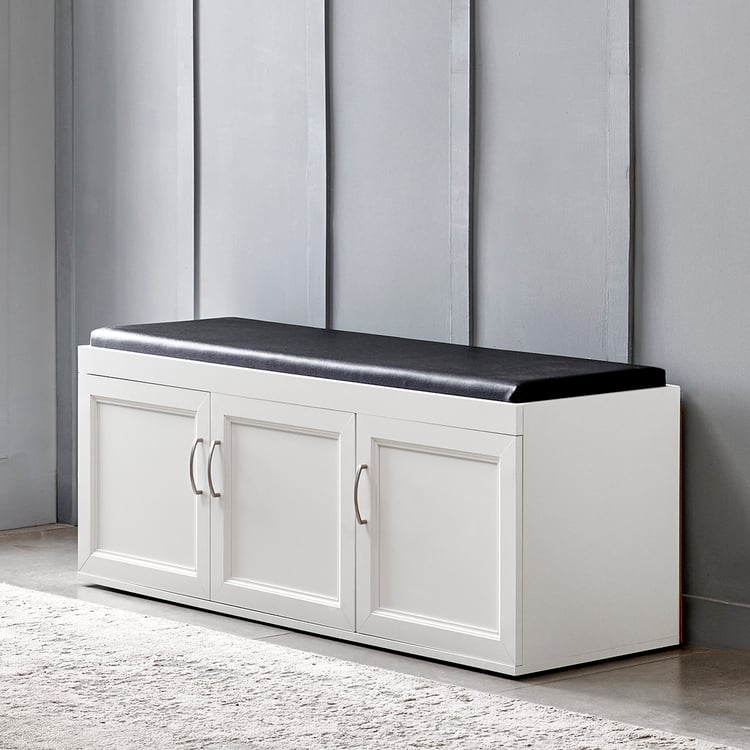 Helios Alton 18 Pairs Shoe Cabinet with Cushion Seat - White
