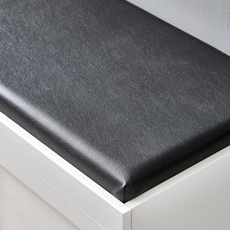 Upgrade your entryway with this shoe cabinet. Crafted from high-quality engineered wood made of fibre boards and compressed with hardwood extracts, it features a strong core with excellent screw-holding capacity. The prelaminated melamine layer on both sides adds enhanced resistance against scratches, dents, moisture, heat, and stains, ensuring long-lasting durability. Designed to hold up to 18 pairs of shoes and topped with a comfortable cushion seat, it combines storage and seating in one practical solution.