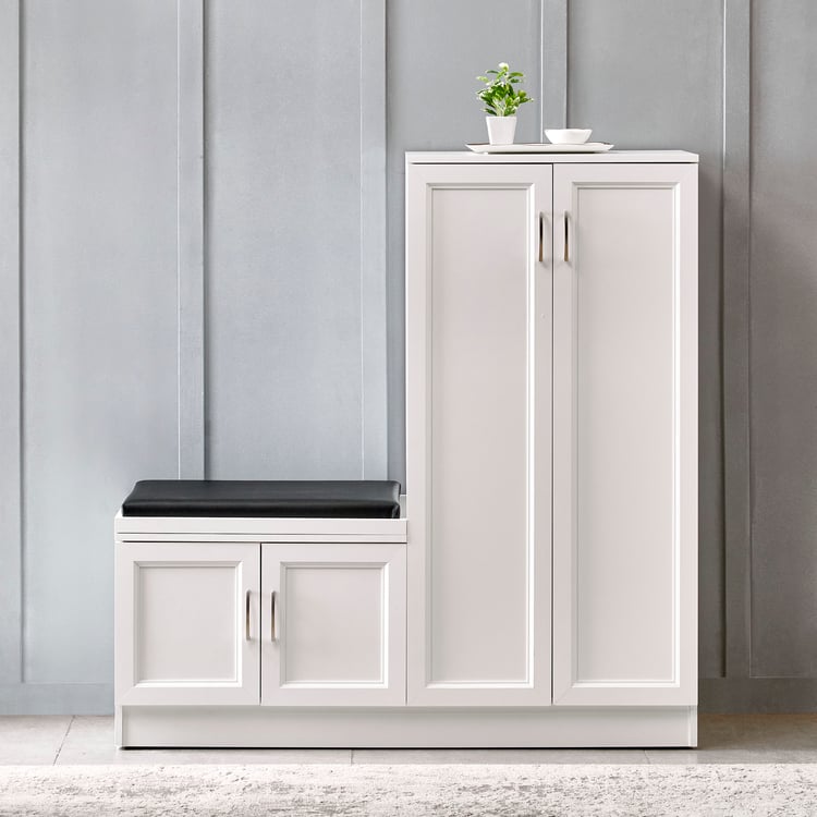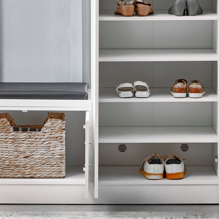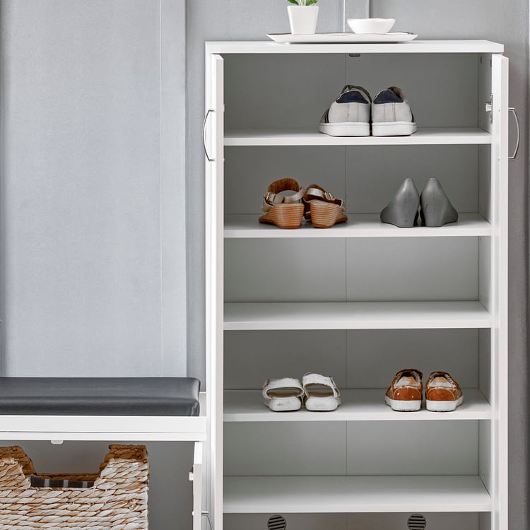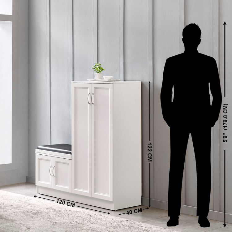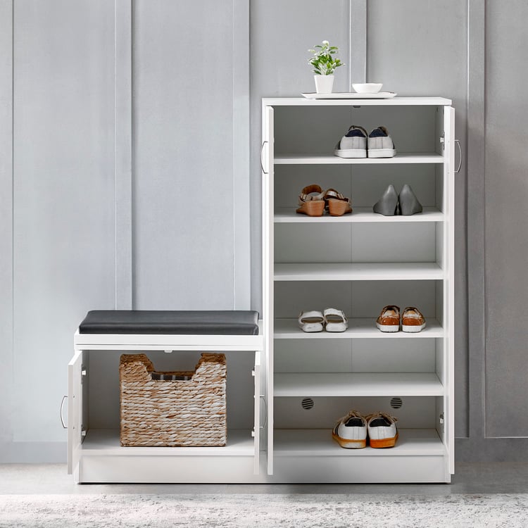 Helios Alton 24 Pairs Shoe Cabinet with Cushion Seat - White