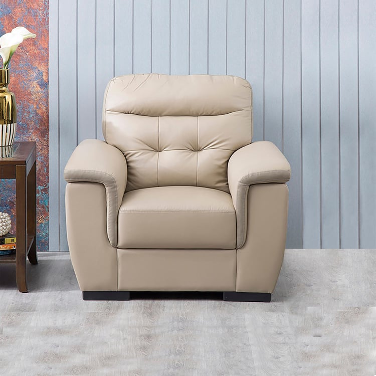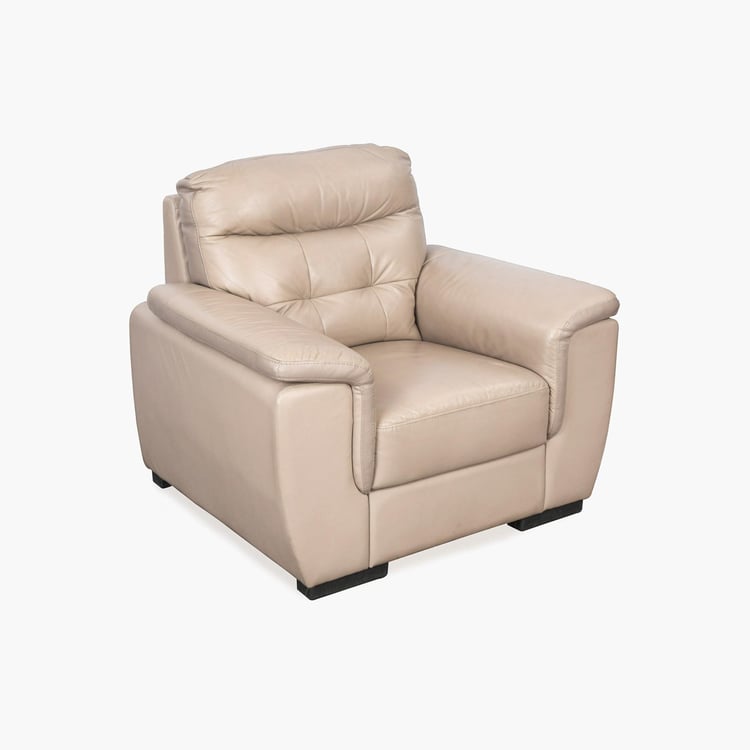 Meticulously crafted from fine leather, this one-seater sofa has comfort written all over it. Made from premium quality wood which is strong, lightweight, and makes it easily portable. The sofa is upholstered with bovine and faux leather ensuring easy maintenance.