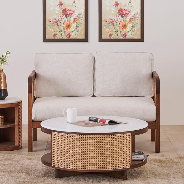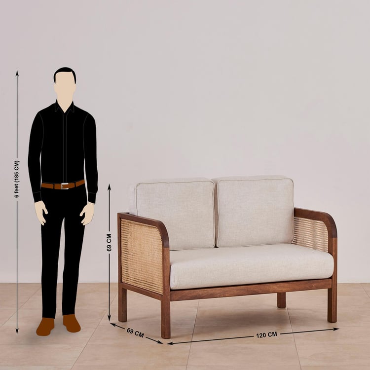 Cane Connection Fabric 2-Seater Sofa - Brown