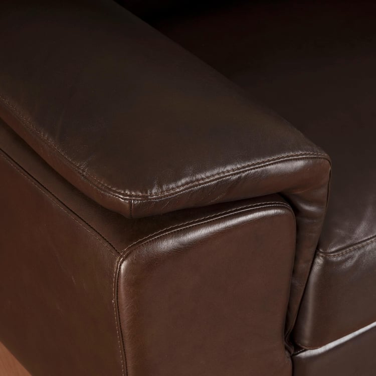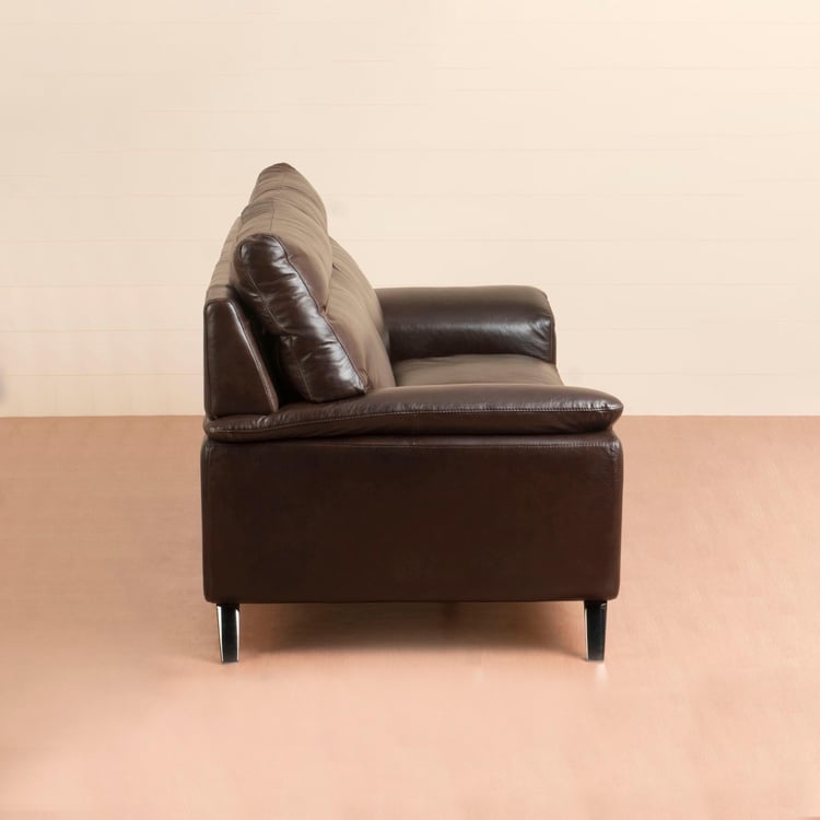 Complete the contemporary look of your home ambience with this chic sofa. Made from premium quality wood which is strong, tough, and portable, this sofa is supported by laminated veneer lumber. The sofa is upholstered with high range Bison Brute Leather, ensuring long-lasting maintenance.
