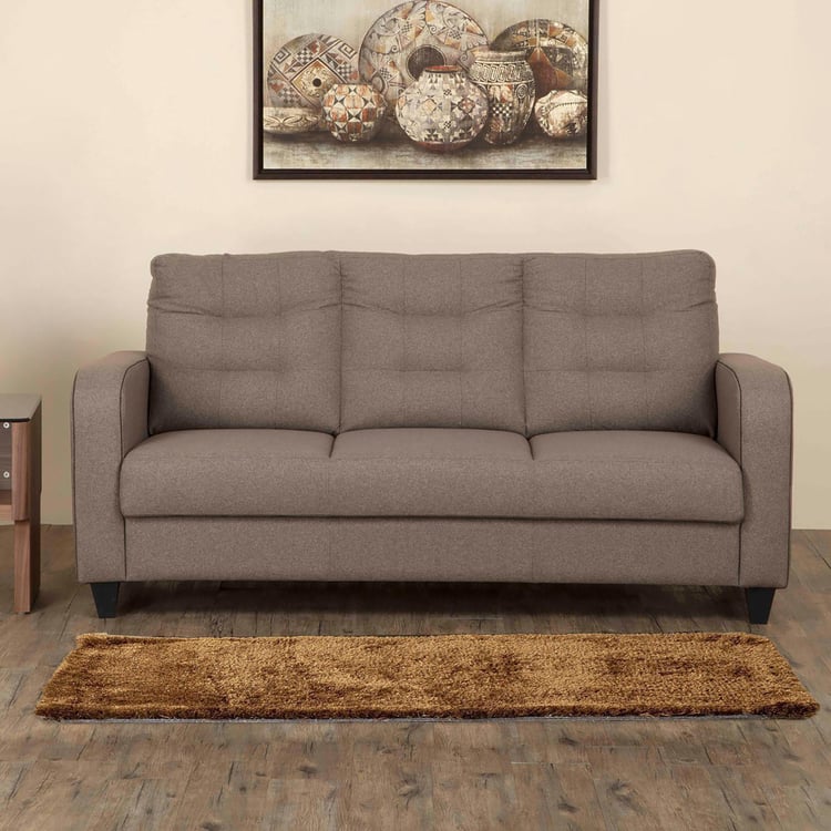 Enjoy complete relaxation in this comfy three-seater sofa crafted from high-quality Pinewood. It is strong, lightweight, and offers comfortable seating. The sofa is upholstered with durable and recyclable polyester fabric and designed with high elastic nylon webbing. Filled with high-resilient foam, this sofa comes with a supportive backrest packed with Non-Siliconised polyfill for greater back support and comfort. It comes with ABS legs for longer durability.