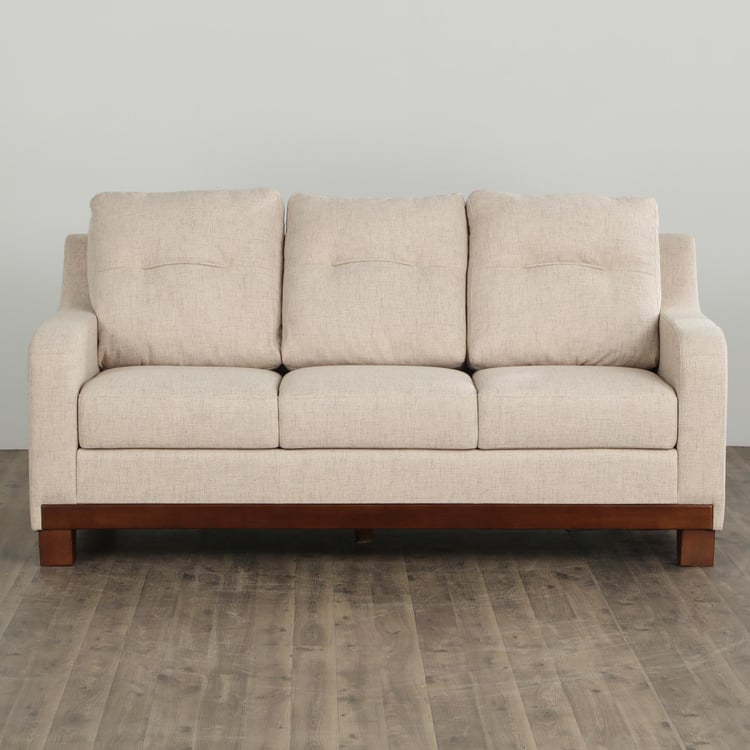 Give a luxe addition to your living space with this chic sofa crafted from high-quality wood. It is strong, lightweight, and offers comfortable seating. The sofa is upholstered with durable and recyclable polyester fabric and designed with high elastic nylon webbing. Filled with high-resilient foam, this sofa comes with a supportive backrest packed with Non-Siliconised polyfill for greater back support and comfort.