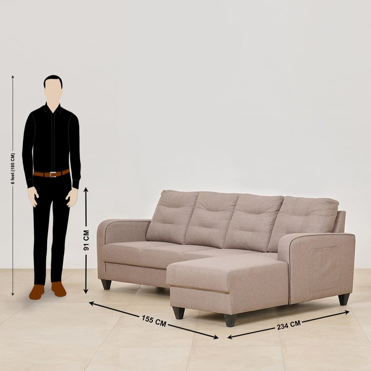 Montoya Fabric 3-Seater Right Corner Sofa With Chaise - Brown