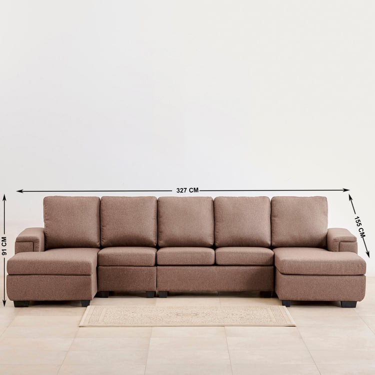 Signature Arden Fabric 3-Seater Sectional Sofa with Left and Right Chaise - Brown