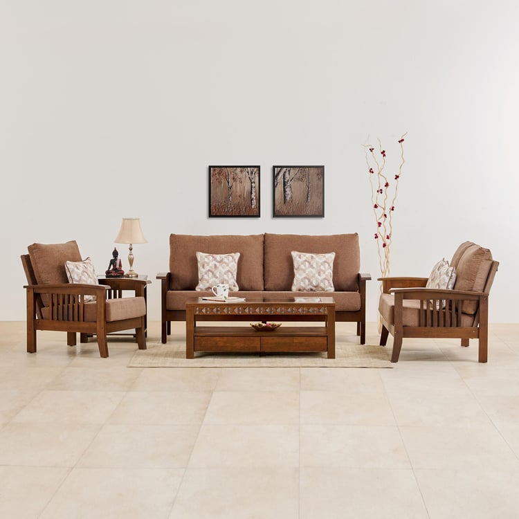 Abby Fabric 3+2+1 Seater Sofa Set with Cushions - Brown