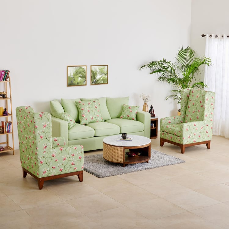 Cane Connection Fabric 3+1+1 Seater Sofa Set with Cushions - Green