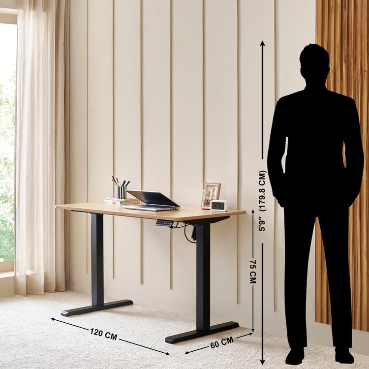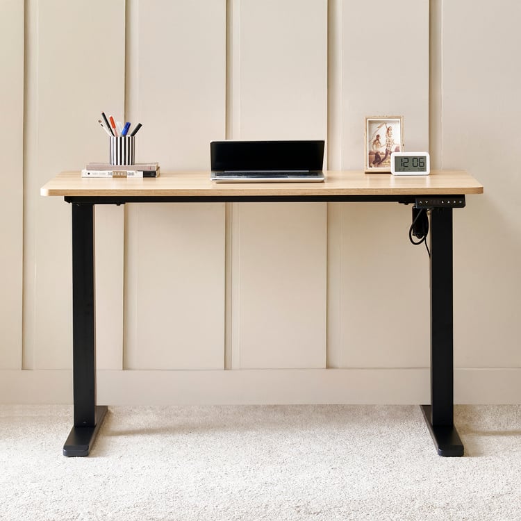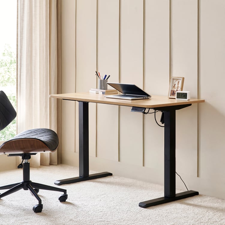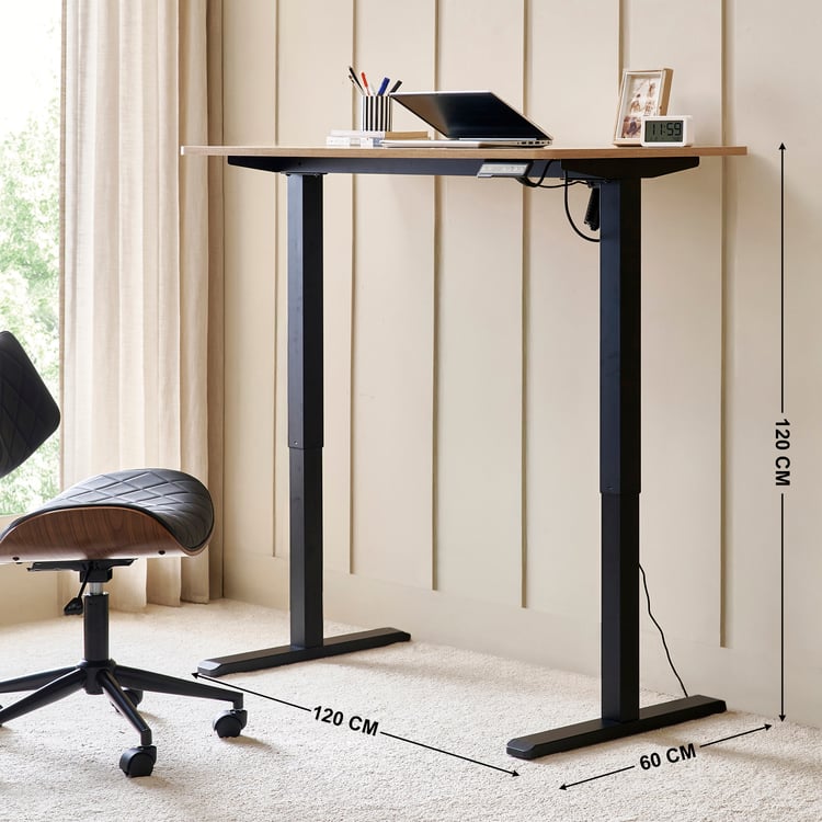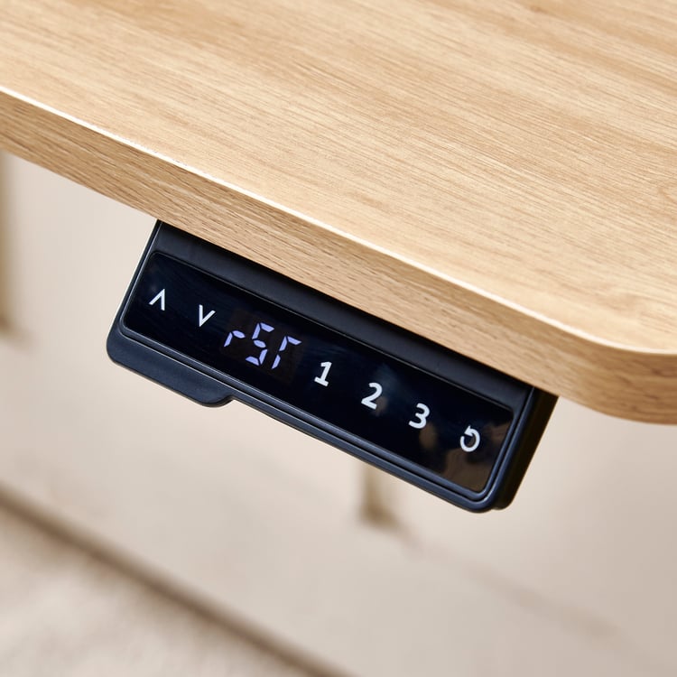 Upgrade your workspace with this smart height-adjustable study desk designed for modern living. Featuring an MDF top with melamine prelam finish, solid wood elements, and sturdy iron legs, it offers durability, termite resistance, and stability. The dual-motor system supports up to 60 kg, while the progressive frame fits multiple desktop sizes. A smart control panel with LED display and memory presets, along with wireless charging, USB 2.0, and Type-C ports, ensures effortless convenience and productivity.