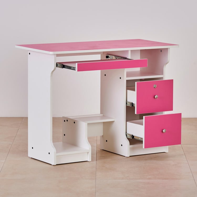 This multipurpose table is made of engineered wood and is compact and durable to accommodate the desktop, cpu, and shelf. It provides space for invertor unit and 2 drawers with lock and a rack shelf is provided to accommodate and secure the documents. This table also comes with a pull-out keyboard as well as mouse space. The table top is made of E2 grade wood, with pre-lamination to resist the water or moisture penetration into the core. Also its quoter with melamine for scratch resistance.